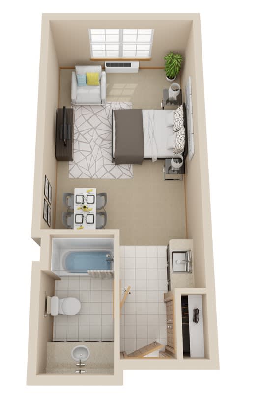 Spacious, open layouts with plenty of room for the furniture, art, and collectibles you’ve come to love. Offering you full-size kitchenettes perfect for entertaining visiting family and friends along with a full list of features like; air conditioning, cable TV, refrigerator, and private bathroom.